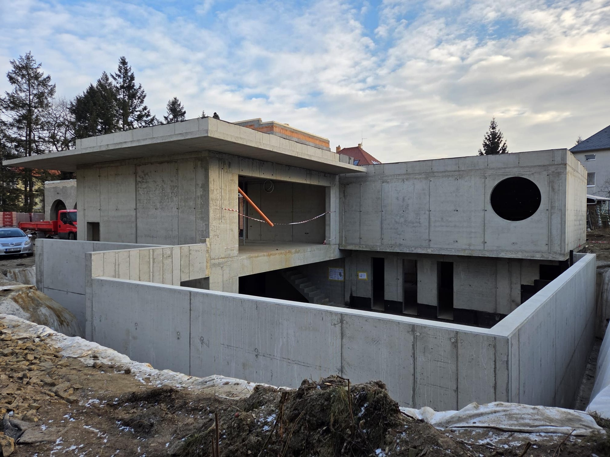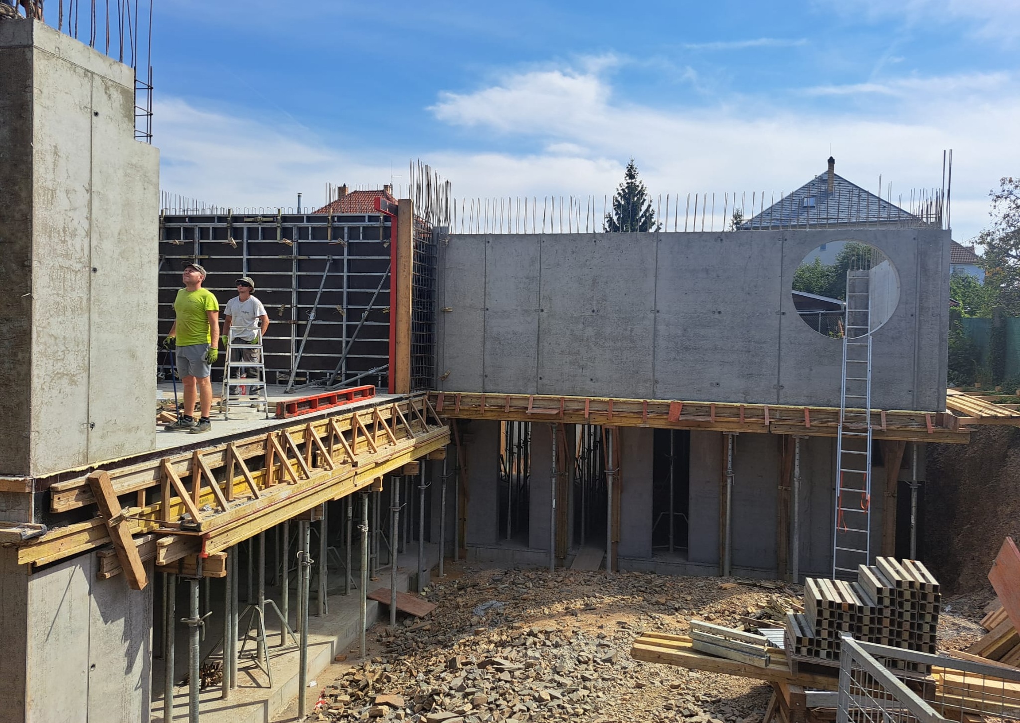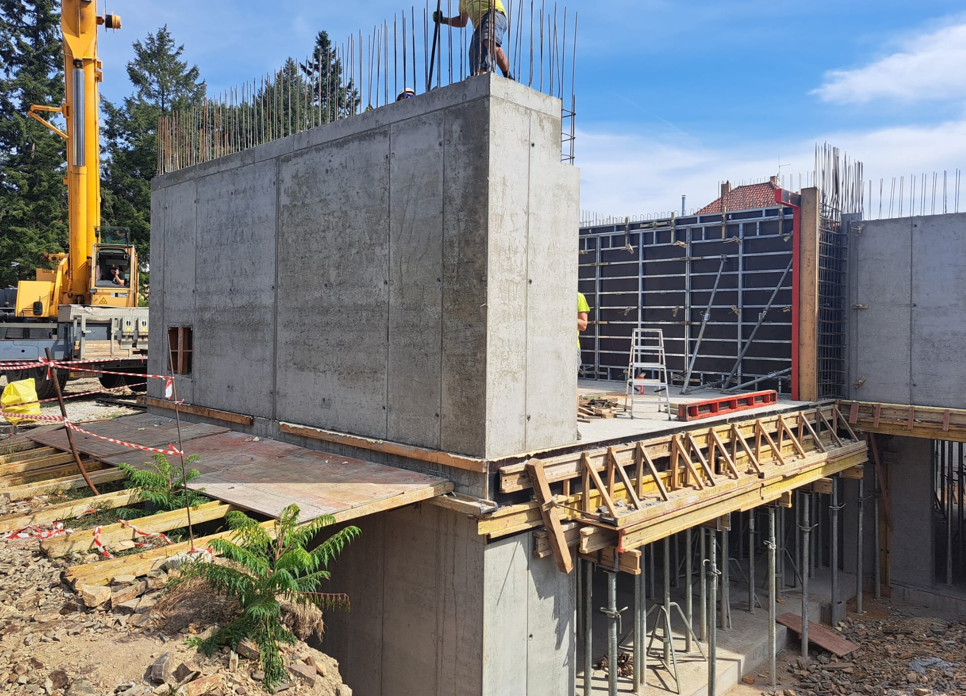 Zhotovitelem železobetonové monolitické konstrukce vily a opěrných stěn je společnost AMO s.r.o. – náš významný zákazník. Společnost ROLAND se na této stavbě podílí dodávkou bednicích systémů: