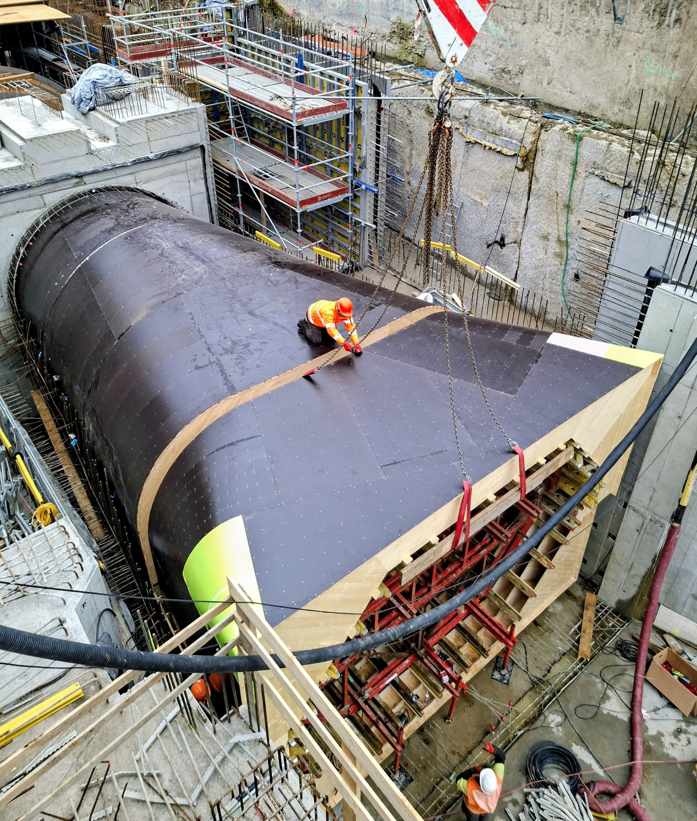 Hydraulický profil má délku přibližně 40 metrů a jeho průřez přechází z kruhu o průměru 4,5 m do obdélníku 7,3 x 5,6 m. Tato složitá geometrie klade vysoké nároky nejen na samotnou realizaci, ale i na přesnost projekce bednění.